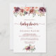 Cette invitation à baby shower de calligraphie florale d'été rustique est parfaite pour un baby shower moderne. Le design est composé de fleurs d'aquarelle bordeaux, roses et rousses avec des feuilles verts dans un arrière - plan verni brun.