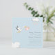 Mignonne invitation de baby shower minimal avec une cigogne portant un bébé avec deux nuages d'aquarelle et simple texte propre baby shower (nom) où vous pouvez ajouter votre nom, il ya aussi facile de customiser modèles texte où vous pouvez ajouter tous vos détails pour votre journée spéciale.