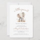Cette mignonne invitation au baby shower présente une aquarelle illustrant l'éléphant. Ci-dessus, les mots "un peu de cacahuète" apparaissent dans un script d'écriture à la mode beige. Personnalisez le texte avec le nom de la maman-to-be en écriture beige et les détails en police gray sans serif. L'envers offre de l'espace pour la tombola de couche, les livres pour bébé, et les détails du registre, ainsi qu'un code QR pratique que les clients peuvent scanner pour visiter le registre. Idéal pour un baby shower sans distinction de genre.