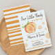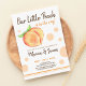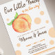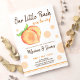 Célébrez votre baby shower en couple avec notre douce aquarelle comme une invitation de la pêche. Designs présente une illustration de pêche à l'aquarelle dessinée à la main sur un arrière - plan de couleur pastel modifiable. Cette douce petite invitation au baby shower pêche est parfaite pour votre petite fête d'un baby shower, un baby shower sucré à la pêche, ou sucré comme une fête d'anniversaire de pêche