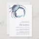 L'invitation au baby shower chic côtier présente une illustration de crabe bleu aquarelle de style vintage, avec les détails de votre baby shower en bleu marine classique. Parfaites pour les baby showers à thème de plage, d'été ou nautique, ces invitations de style côtier renversent vers le bleu du port.