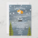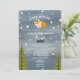 Un baby shower par courriel avec une illustration d'un bébé renard qui se dresse sur une branche d'arbre entourée d'étoiles avec un poème original. Illustration de montagne et arbres au fond. Personnalisez le texte. L'Arrière - plan est d'inspiration bleu foncé.