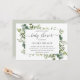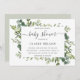 Cette invitation baby shower présente des eucalyptus à l'aquarelle peinte et des feuilles verts avec un cadre rectangle en forme de couronne. Pour une personnalisation plus avancée de cette conception, cliquez sur le lien "Customiser plus loin". Des articles correspondants sont également disponibles.