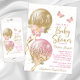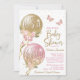Invitation baby shower de ballon avec de jolis ballons roses et or avec fleurs, papillons et arcs sur un arrière - plan blanc. Cette invitation mignonne baby shower rose et or est facilement customisée avec vos détails de l'événement. Vous pouvez également changer la couleur arrière - plan sur cette adorable invitation au baby shower rose et or.