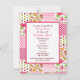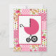 Une invitation à la baby shower d'une fille illustrant un chariot de bébé rose vif sur un dessin arrière - plan qui comprend des pois, des zigzags, des paisley, des roses, des en vichy et des rayures. Personnalisez le texte en arrière avec les détails de votre occasion.
