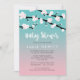 Invitation ressort-orientée mignonne de baby shower comportant deux ou trois branches de cerisier complètement des fleurs sur un rose et un fond d'ombre de turquoise.