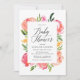 Invitations chic et élégantes de douches bébé avec des fleurs d'aquarelle vibrantes dans les tons rose et pêche complétés par de belles calligraphies. Personnalisez les invitations florales à la douche bébé en ajoutant le nom et les détails de la douche de la future mère.