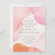 Aquarelle moderne tendance rose formes abstraites invitation baby shower avec une touche d'orange.