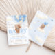 Fêtez l'arrivée imminente de votre petit garçon avec notre Baby shower Teddy Bear! Cette adorable invitation présente un ours tenant des ballons bleus, flottant dans le ciel parmi les nuages et les étoiles. L'arrière - plan bleu aquarelle ajoute une touche de rêve au design. Le texte de l'invitation dit "On peut attendre, bébé est en route". Tout le texte est entièrement personnalisable, vous permettant d'ajouter le nom de votre petit et vos propres détails personnels. Invitations vos proches à partager la joie de votre baby shower avec notre Baby shower Teddy Bear Invitation et créer des souvenirs qui dernier une vie!