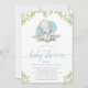 Invitation Baby shower de garçon éléphant vert moderne