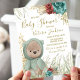 Baby shower d'herbe Pampas avec mignon bébé ours portant un pull sur un arrière - plan d'herbe pampas fleuri. Cette invitation à porter baby shower est facilement personnalisée avec les détails de votre événement.