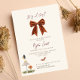Thème de baby shower de fille avec illustration de rouille couleur velours arc en haut. Le fond est décoré de champignons et de papillons.