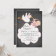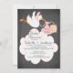 Mention de baby shower de bébé en tableau noir mignon avec une cigogne volante tenant un paquet de petite fille rose avec un énorme nuage fixé sur un tableau noir. Au verso de notre invitation figure une cigogne assortie avec une petite fille Visitez notre boutique pour voir cette invitation de baby shower de garçons en tableau noir dans les choix de taille populaire et pour les autocollants de baby shower assortis, merci cartes de notes et timbres-poste. ©JW Illustrations bla