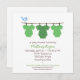 De mignons vêtements de bébé accrochés sur un étendoir sur cette invitation chic.