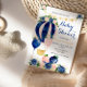 Bienvenue à votre petit lot de joie dans le monde avec notre Baby shower Invitation! Notre design élégant comprend des ballons bleu et marine, ce qui le rend parfait pour célébrer un garçon, une fille ou un genre surprenant révélateur. Fêtez l'arrivée de votre nouveau membre de la famille dans le style avec cette belle invitation baby shower!
