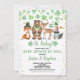 Thème : animaux Shamrocks et boisésOccasion : Baby shower, Baby shower par courrier.Modèle: mignon, boho, élégant, fantaisiste.Couleurs: vert, blanc, or.