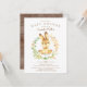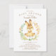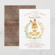 Adorable invitation lapin bébé avec un petit lapin doux entouré d'une couronne dressée sur un arrière - plan en bois rustique pour un baby shower neutre pour le genre. Retournez notre invitation pour voir un retour de coordination pour une touche spéciale supplémentaire.