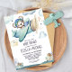 Baby shower d'avion Teddy Bear - Attention ! C'est votre capitaine qui parle. Reposez-vous ! Laissez-nous vous guider à travers la tempête avec cette spectaculaire invitation de baby shower d'avion. Avec un très mignon pilote d'ours en peluche dans une aventure en avion dans le ciel. Présenté dans une étonnante aquarelle verte et bleue. En haut et en bas, un petit bébé est en route. Emmenez votre fête sur de nouveaux sommets avec cette élégante invitation au baby shower.
