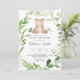 Invitation votre invité avec notre invitation à baby shower d'ours bébé élégant et moderne comprend des gares d'eucalyptus vertes et animaux de safari aquarelle. Personnalisez avec vos détails de baby shower dans une mise en page simple et élégante police de style manuscrite.
