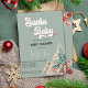 Cette invitation Baby shower de Noël avec les mots "Père Noël Baby" en police rétro et ornée de graphiques boho d'un arbre de Noël et présente est une pièce de papeterie charmante et festive.Le design général de l'invitation est un mélange harmonieux d'esthétique rétro et boho, créant une atmosphère chaleureuse et accueillante pour le baby shower sur le thème de Noël. Les couleurs sont riches et invitantes, et les graphismes évoquent un sentiment de nostalgie et de célébration. C'est une représentation parfaite de la joie et de la fête qui accompagnent l'accueil d'un nouveau bébé pendant la période des fêtes.