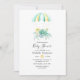ranunculus, lupins, pivoines et succulents parachute bouquet baby shower invitation dans les tons pastel.