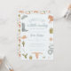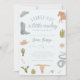 Carte d'invitation baby shower du garçon mignonne avec des illustrations de bottes de cowboy, cheval, serpent, crâne, cactus, casquettes de cowboy, etc. Le texte dit "selle up ! un petit cowboy est en route"