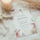Elégante invitation au baby shower côtier pour les baby showers d'été ou de plage, les détails de votre événement en lettres bleu marine et gris, encadré par une bordure d'aquarelle de couleur pastel corail de mer, coquillages et étoiles de mer.