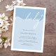 Calligraphie Bleue moderne Script Baby shower Invitation dispose d'une calligraphie moderne et d'un arrière - plan couleur deux tons.