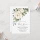 Design moderne et élégant avec des fleurs crème d'aquarelle blanche, sur la calligraphie blanche, élégante "baby shower" avec des swashes; sur le dos blanc fleuri couronne en forme de coeur, initiales, le tout sur arrière - plan blanc. Les éléments correspondants se trouvent dans ma collection de fleurs blanches.