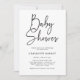 Invitation Baby shower Script Simple. Cette invitation au baby shower de script minimaliste à la main moderne est parfaite pour les couples qui veulent faire une déclaration de style contemporain. L'élégante calligraphie associée à la palette de couleurs noir et blanc créera une invitation intemporelle que vos invités n'oublieront pas. Faites une déclaration audacieuse avec ce design unique et élégant!