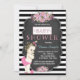 Bande noire adorable fleurs roses et bonbon bébé fille tableau tableau bébé invitations douche bébé. Cette belle invitation vintage de baby shower en damier est facilement customisée pour votre événement en ajoutant vos détails dans le style et la couleur de police, et le libellé de votre choix.