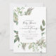 Invitation de baby shower de verdure boisée organique inspirée avec une typographie élégante écrite à la main, conçue pour être rapidement et facilement personnalisée selon les spécificités de votre événement.