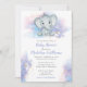 Ce mignon petit éléphant aux couleurs pastel et aux éclaboussures d'aquarelle arrière - plan d'or est une excellente invitation au baby shower. Joli texte de script est fait en violet et la couleur peut être changée! Ça a l'air extraordinaire. Voir aussi nos points de coordination.