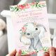 Baby shower d'éléphant de fille invitation avec adorable petit éléphant avec des fleurs sur un joli corail, rose et or aquarelle arrière - plan floral. Cette invitation à baby shower d'éléphant mignon est facilement customisée avec vos détails d'événement dans le style de police que vous préférez.