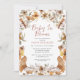 Une élégante invitation à baby shower d'aquarelle d'automne de automne rustique, avec terre cuite, feuilles de chute verte et or et feuillage. Rejoignez-nous pour une fête d'automne confortable pendant que nous douche Poppy et son petit avec amour! Cette invitation baby shower présente des détails délicats d'aquarelle, dans des tons terre d'or, de terre cuite et de feuilles doux vert qui affichent les couleurs changeantes des feuilles d'automne.