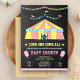 Éblouissez vos invités avec cette mignonne invitation de baby shower à thème carnavalesque avec une tente de cirque et des bonbons en coton rose avec typographie pastel contre un arrière - plan en damier. Ajoutez simplement les détails de votre événement sur ce modèle facile à utiliser pour en faire une invitation unique. Retournez la carte pour révéler un motif rayé rose et blanc au dos de la carte.