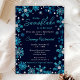 Cette invitation élégante et séduisante présente des flocons de neige couleur bleu turquoise et argent en faux parties scintillant et des étincelles sur un arrière - plan bleu marine. Il est parfait pour un baby shower à thème d'hiver ou de Noël.