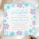 Cette invitation élégante et séduisante présente des flocons de neige couleur violet et bleu turquoise en faux parties scintillant et des étincelles sur un arrière - plan blanc. Il est parfait pour un baby shower à thème d'hiver ou de Noël.