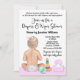 Diapeurs et essuie l'invitation baby shower avec adorable petite fille avec des jouets sur un mignon arrière - plan point rose.