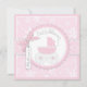 La voiture d'enfant et l'arc 3D-look et le ruban doux avec le flocon de neige impriment pour une carte d'invitation de baby shower de fille.