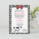 Vache Imprimer Baby Shower Invitations avec un arc et un motif de vache en pointillés rouge et noir et l'arrière - plan correspondant. Image mignonne d'un veau qui peut être enlevé si vous préférez.