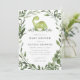 Invitation votre invité avec notre invitation à baby shower de dinosaures élégant et moderne comprend des guirlandes d'eucalyptus vertes et dinosaures aquarelle. Personnalisez avec vos détails de baby shower dans une mise en page simple et élégante police de style manuscrite.