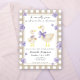 "Une nouvelle oie stupide est sur le point d'être en liberté". Célébrez avec cette mignonne fête de baby shower à thème oie! Aquarelle petite oie de bébé et oie de maman avec arc violet et marguerite de fleurs. cage Brown.