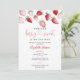 Cette invitation de baby shower douce présente des fraises fraîches et une typographie élégante. Conçue par Thisisnotme©