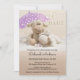 Elégante invitation au baby shower avec de mignons animaux pelés et moelleux avec un parapluie. Les couleurs sont lilas clair avec des tons doux de terre.