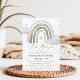 Célébrez la future maman avec cette invitation rêvée de baby shower! Doté d'un arc-en-ciel doux aux teintes bleu et or, de nuages moelleux et d'étoiles scintillantes, ce design d'inspiration boho ressemble à un câlin. Créé pour ceux qui aiment le mélange d'élégance et de fantaisie, cet invitation donne l'ambiance idéale pour un rendez-vous magique.