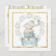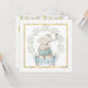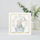 Eléphant assis sur un tronc d'arbre avec oiseau dans les couleurs muettes de vert, bleu & champignons avec des accents d'or. Facilement customisé avec les détails de votre fête.