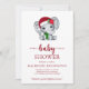 Baby shower d'éléphant de Noël mignon Invitation mettant en vedette un adorable petit éléphant dans un joli chapeau de Père Noël rouge et vert. Parfait pour vos Baby showers d'hiver ou de vacances ! Veuillez nous contacter à cedarandstring@gmail.com si vous avez besoin d'aide pour la conception ou les produits correspondants.
