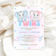 Invitation Baby shower Eléphants Jumeaux Garçon Fille