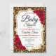 Invitation Baby shower - Empreinte de léopard d'or rouge